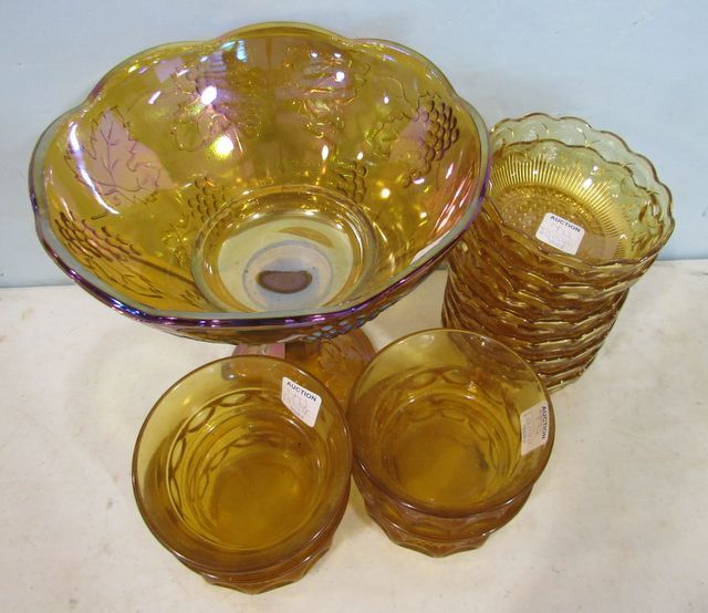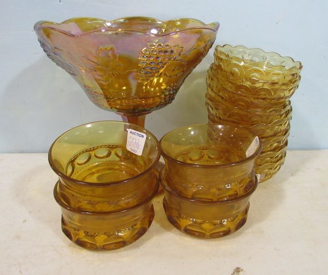 772 Eight Matching Amber Berry Bowls, Four Amber Bowls and a Carnival Grape Compote