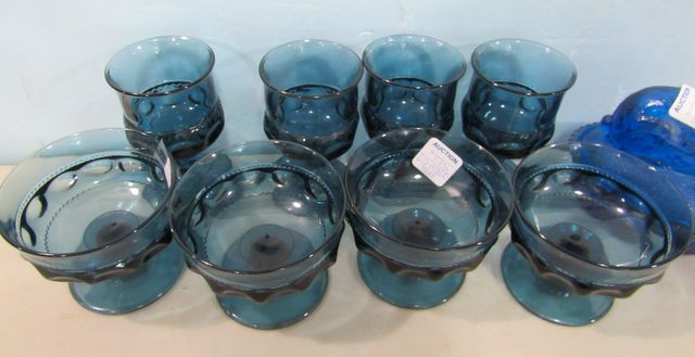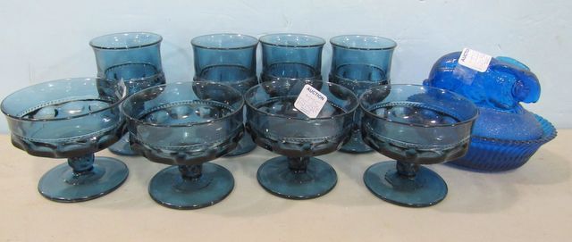 775 Vintage Tiara King's Crown Blue Glassware and a Rabbit Nesting Jar