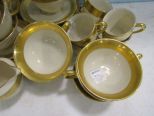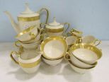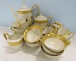 Includes a coffee pot, creamer, sugar bowl, eight demitasse cups and saucers and nine regular size cups and saucers. Includes a coffee pot, creamer, sugar bowl, eight demitasse cups and saucers and nine regular size cups and saucers.