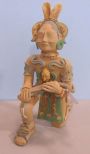 304 Large Kneeling Pottery Mayan Holding Lizard