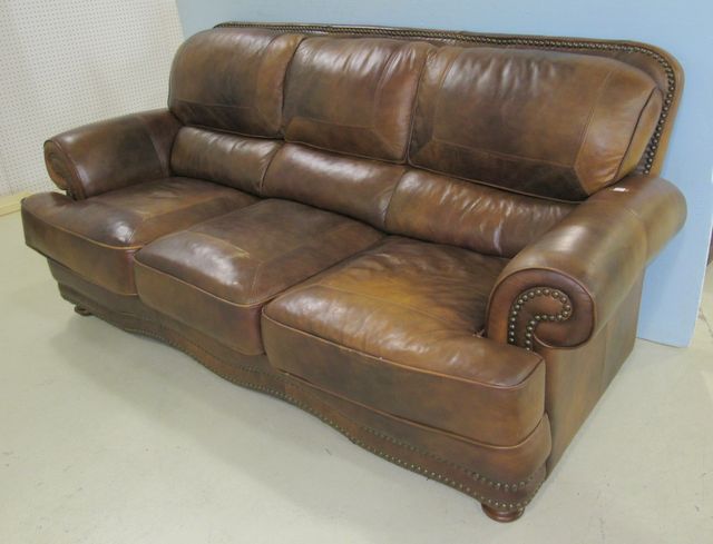 354 Densing Furniture Group Leather Sofa with Nail Head Trim