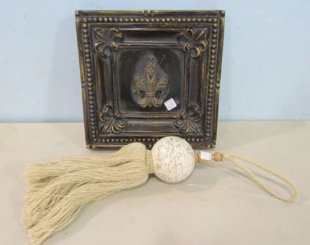 1015 Fleur De Lis Square Plaque and a Globe Tassel