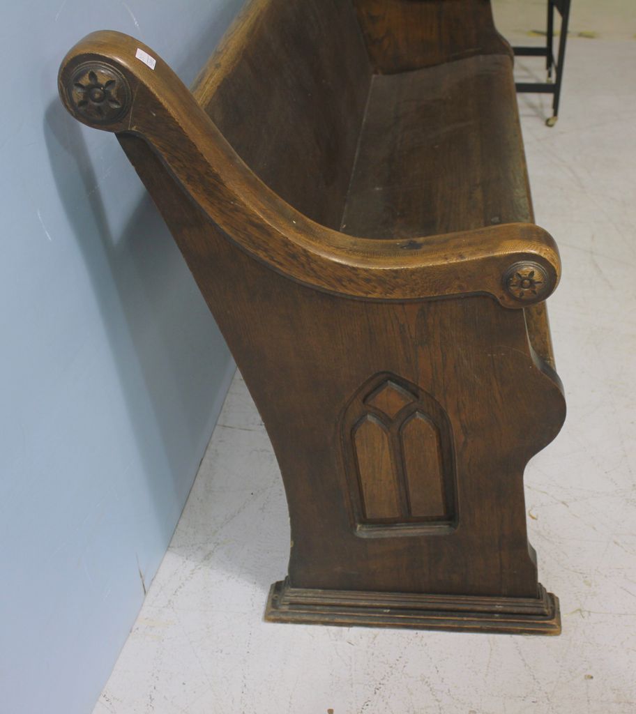 20th Century Oak Gothic Church Pew; 64" w., 18" d., 36" h. 20th Century Oak Gothic Church Pew; 64" w., 18" d., 36" h.