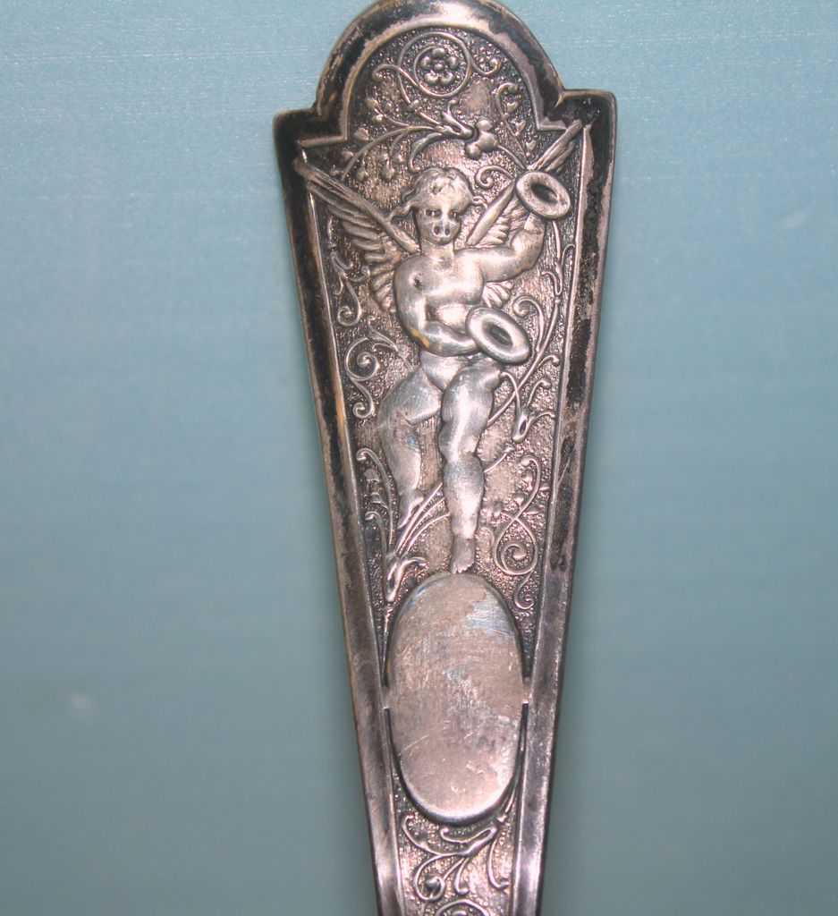 349 Ornate Engraved Winged Cupid Punch Sterling Ladle, a Beautiful Etched Bowl with Ornate Handle, and a Small Sheffield Strainer