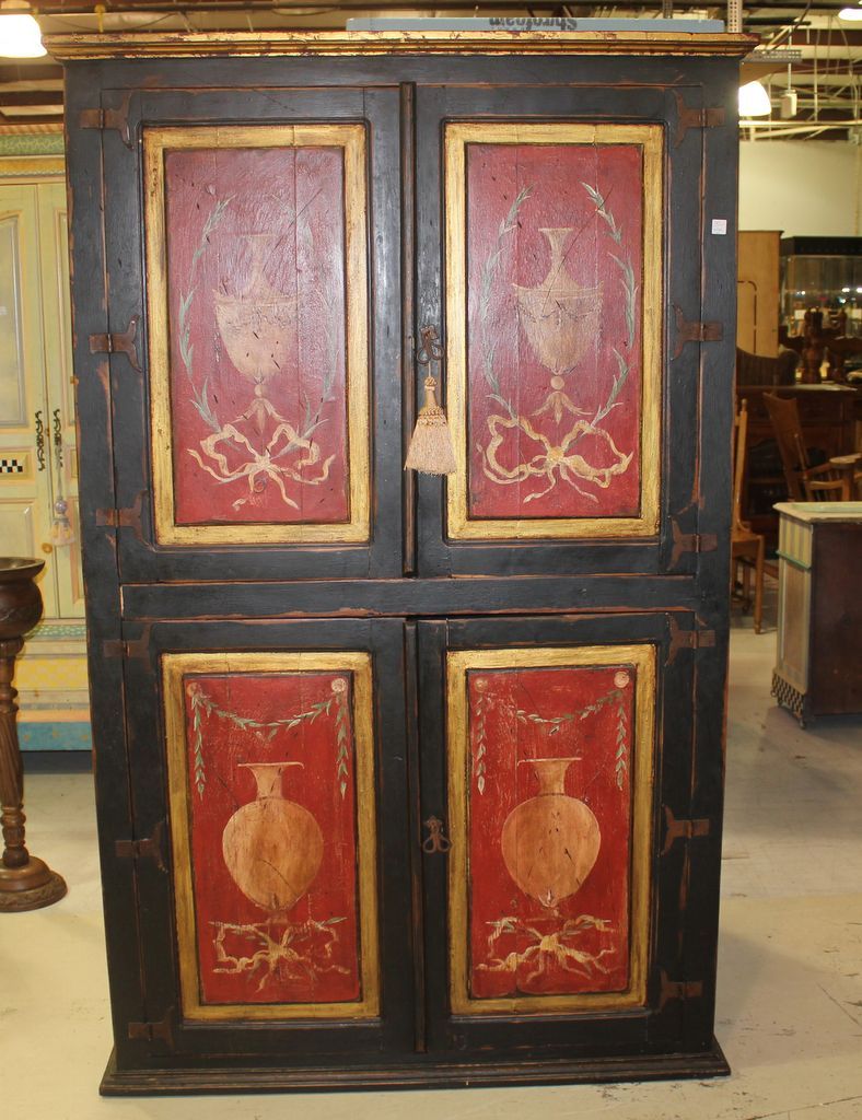 Hand Painted Oriental Entertainment Center; 79" h., 47" w., 23 1/2" d. Hand Painted Oriental Entertainment Center; 79" h., 47" w., 23 1/2" d.