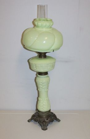 396 Royal Green Milk Glass Victorian Banquet Lamp