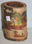 Hand Painted Brush Pot, landscape scene of Indian, canoe on the river; 7 7/8" h., 5" dia. Hand Painted Brush Pot, landscape scene of Indian, canoe on the river; 7 7/8" h., 5" dia.