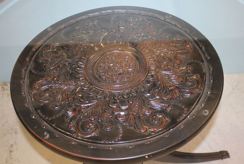 419 Round Glass Top Dining Table with Detailed Carving on Pedestal