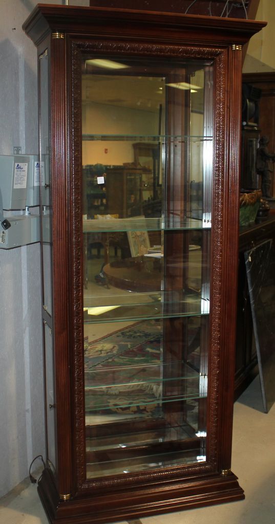 Lighted Display or Showcase, four glass shelves, side open; 80" h., 35" w., 12" d. Lighted Display or Showcase, four glass shelves, side open; 80" h., 35" w., 12" d.