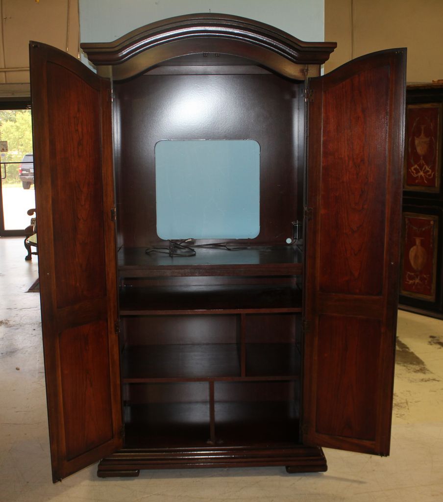 Entertainment Center, two doors, two shelves, with optional dividers; 81" h., 37" w., 21" d. Entertainment Center, two doors, two shelves, with optional dividers; 81" h., 37" w., 21" d.