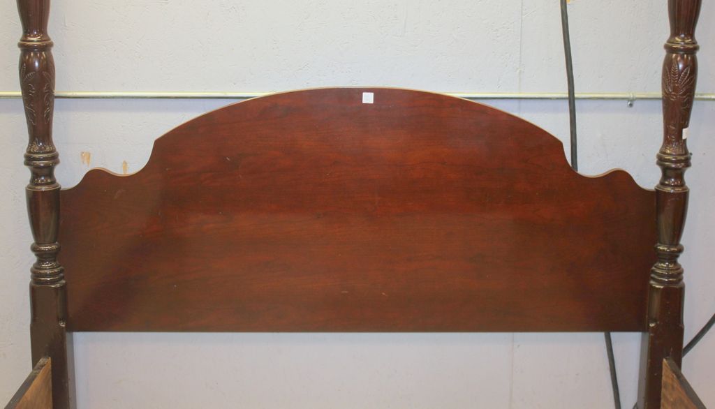 Queen Size Mahogany Bed with Carved Post, with mattress set (60" w., 80" l.) Queen Size Mahogany Bed with Carved Post, with mattress set (60" w., 80" l.)