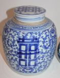729 c1900 Qing Dynasty "Double Happiness" Jar w/matching lid and Blue & White Oriental Ginger Jar