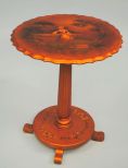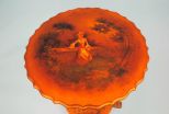 A late 19th Century "Vernis Martin" parlor table in French manner, the top with a handpainted Romantic scene of a lady in a garden. Scallop-edged top, base with reeded pedestal hand-painted in flowers, 29" H., 24" dia. A late 19th Century "Vernis Martin" parlor table in French manner, the top with a handpainted Romantic scene of a lady in a garden. Scallop-edged top, base with reeded pedestal hand-painted in flowers, 29" H., 24" dia.