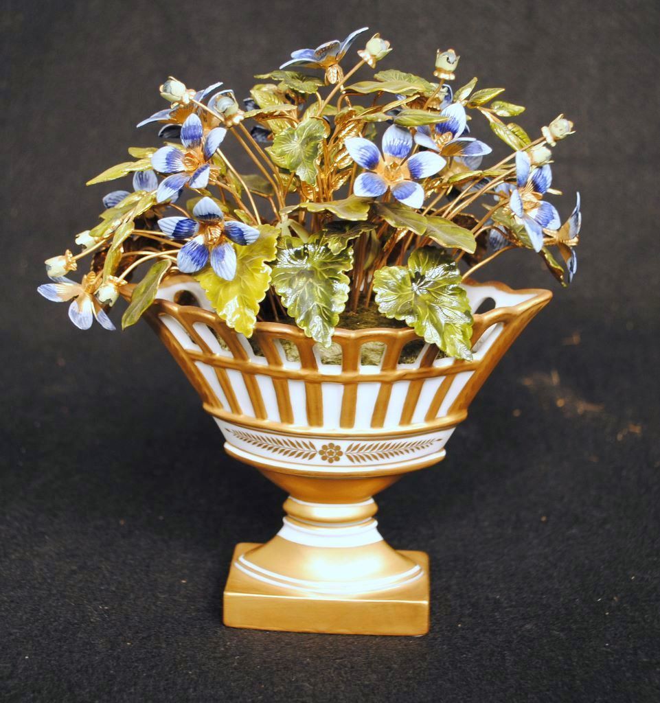 753 Small Gorham Porcelain Reticulated Basket with Enameled Flowers