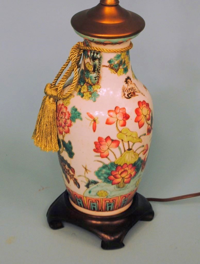 Chinese Polychrome Ceramic Table Lamp, 20th century, cylindrical form with turquoise background and large floral decoration, H. 19 1/2" Chinese Polychrome Ceramic Table Lamp, 20th century, cylindrical form with turquoise background and large floral decoration, H. 19 1/2"