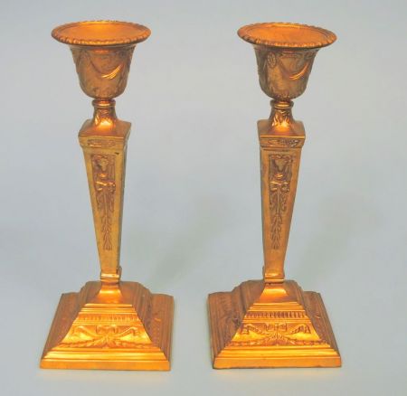 Pair of English Regency Brass Candlesticks, 20th century, H. 9 3/4" Pair of English Regency Brass Candlesticks, 20th century, H. 9 3/4"