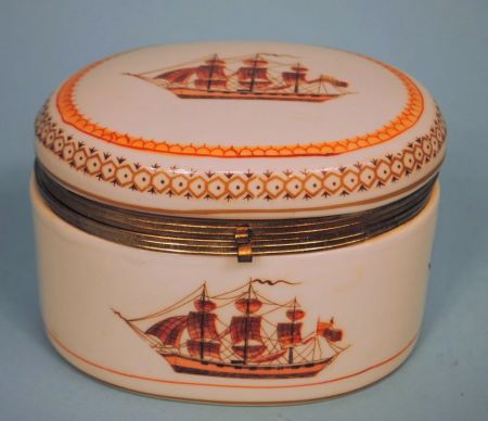 Japanese Oval Porcelain Covered Box, 20th century, L. 6 1/2" Japanese Oval Porcelain Covered Box, 20th century, L. 6 1/2"