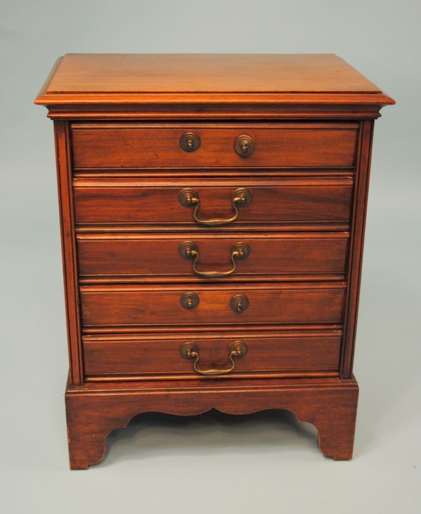 c1900 Georgian style English mahogany small chest with five paper file drawers, shaped apron, bracket feet, all original brasses, H. 24 1/4", W. 20", d. 13 1/2" c1900 Georgian style English mahogany small chest with five paper file drawers, shaped apron, bracket feet, all original brasses, H. 24 1/4", W. 20", d. 13 1/2"