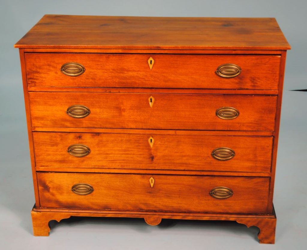 Four drawer Cherry Chippendale chest, bone escutcheons, bracket feet. W.41" d. 19",H.34 1/2" Four drawer Cherry Chippendale chest, bone escutcheons, bracket feet. W.41" d. 19",H.34 1/2"