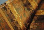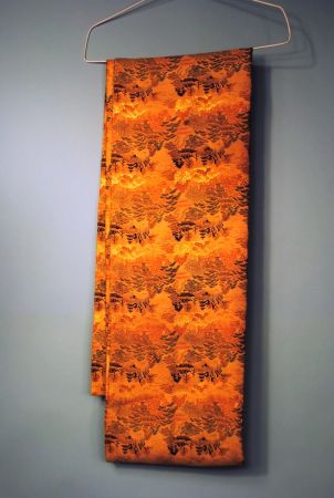 A Chinese silk brocade 12' 10" long table runner, 12"w (24" undoubled), with gold threads in a design of pagodas. A Chinese silk brocade 12' 10" long table runner, 12"w (24" undoubled), with gold threads in a design of pagodas.
