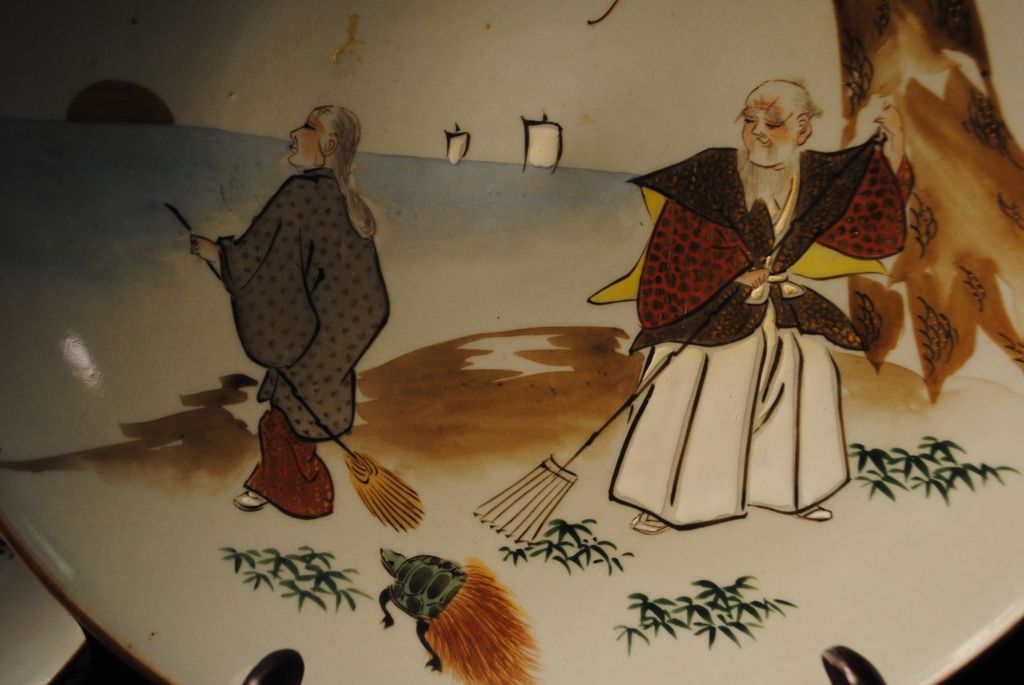 178 Eight Japanese Bone China Kutani with Gardeners, Tortoises & Cranes