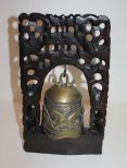 206 Burmese Archaic Traveling Ceremonial Dragon Bell in Silver Inlaid Teak Stand
