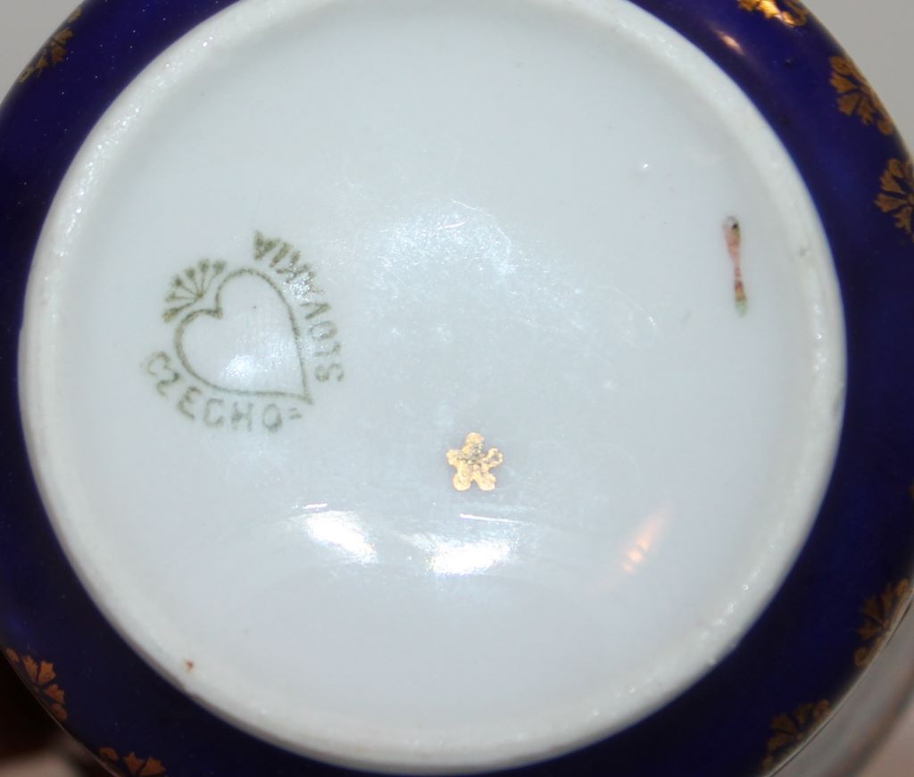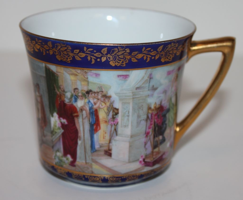 Twenty-four matching pieces of c1925 Gebruder Benedikt Porcelain decorated in cobalt blue and gilt, with panels illustrating Classical Roman scenes, including (of course) charioteers. Six 7" plates, twelve 5 3/4" saucers, and six 2 1/2"h cups. Twenty-four matching pieces of c1925 Gebruder Benedikt Porcelain decorated in cobalt blue and gilt, with panels illustrating Classical Roman scenes, including (of course) charioteers. Six 7" plates, twelve 5 3/4" saucers, and six 2 1/2"h cups.