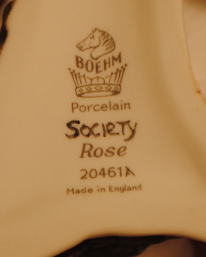 Boehm Porcelain, Made in England, Society Rose, 20461A, 3 1/2" L. Boehm Porcelain, Made in England, Society Rose, 20461A, 3 1/2" L.