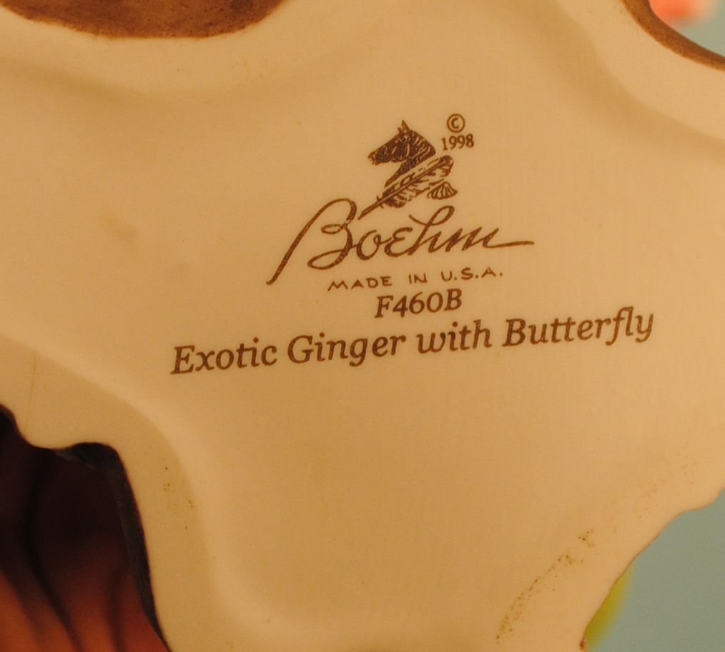 252 Boehm Porcelain, Made in USA, Exotic Ginger With Butterfly