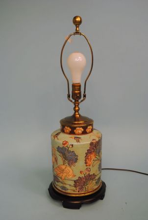 Chinese Polychrome Porcelain Ginger Jar Table Lamp, converted/drilled, 20th century, height of jar 18 3/4", 26"h to top of finial. Chinese Polychrome Porcelain Ginger Jar Table Lamp, converted/drilled, 20th century, height of jar 18 3/4", 26"h to top of finial.