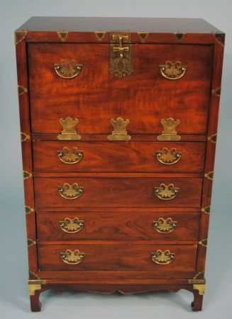 Henredon Acquisitions Collection mahogany "Ming Chest," all original brasses with drop-down "butler's" desk, 25 3/4"w x 16 3/4"d x 42 1/2"h. (Matches Lot #400 chest) Henredon Acquisitions Collection mahogany "Ming Chest," all original brasses with drop-down "butler's" desk, 25 3/4"w x 16 3/4"d x 42 1/2"h. (Matches Lot #400 chest)