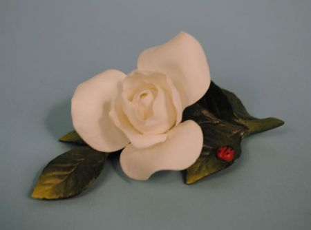 Boehm 1991 Porcelain "Society Rose", white rose on leaves with ladybug, 3" L. Boehm 1991 Porcelain "Society Rose", white rose on leaves with ladybug, 3" L.