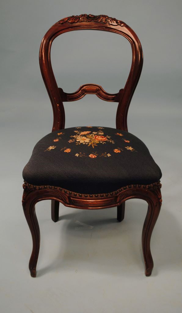 327 Victorian Balloon Back Ladies Chair with Needlepoint seat