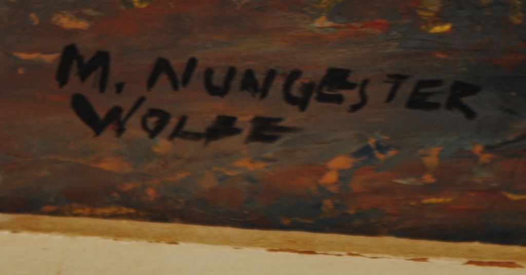 Original Mildred Nungester Wolfe (1912-2009), Jackson, Mississippi, painting on board, "Morning on Royal Street," New Orleans, signed lower right, 15 1/2" x 24", 22" x 30 1/4" in original Wolfe Studios frame. Purchased by Mrs. Latimer at the Edgewater Hotel Exhibit. This painting is included in the book, Mildred Nungeister Wolfe, edited by Elizabeth Wolfe. Collection of Leigh Barrett Latimer Original Mildred Nungester Wolfe (1912-2009), Jackson, Mississippi, painting on board, "Morning on Royal Street," New Orleans, signed lower right, 15 1/2" x 24", 22" x 30 1/4" in original Wolfe Studios frame. Purchased by Mrs. Latimer at the Edgewater Hotel Exhibit. This painting is included in the book, Mildred Nungeister Wolfe, edited by Elizabeth Wolfe. Collection of Leigh Barrett Latimer