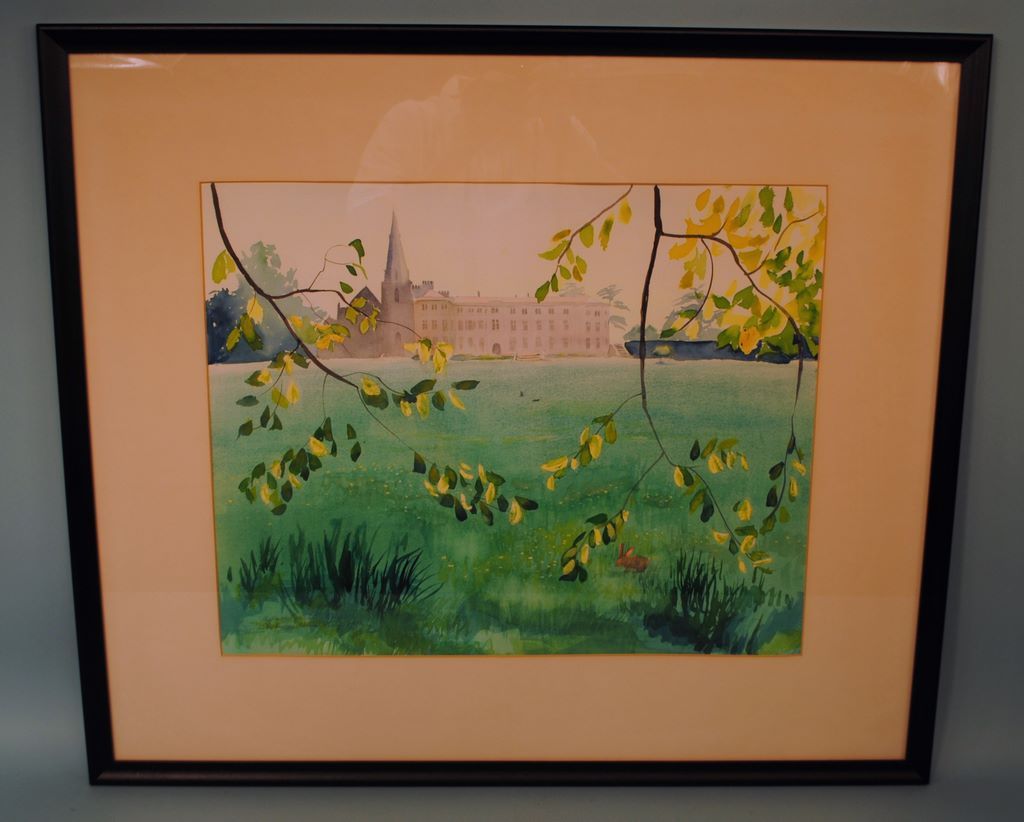Mildred Nungester Wolfe (1912-2009), Jackson, Mississippi, watercolor of Sherhoume House, England, 18 1/2" x 23", 29" x 33 1/2" framed by Brown's gallery. Dated 1984, fully signed and titled lower left. Collection of Leigh Barrett Latimer Mildred Nungester Wolfe (1912-2009), Jackson, Mississippi, watercolor of Sherhoume House, England, 18 1/2" x 23", 29" x 33 1/2" framed by Brown's gallery. Dated 1984, fully signed and titled lower left. Collection of Leigh Barrett Latimer