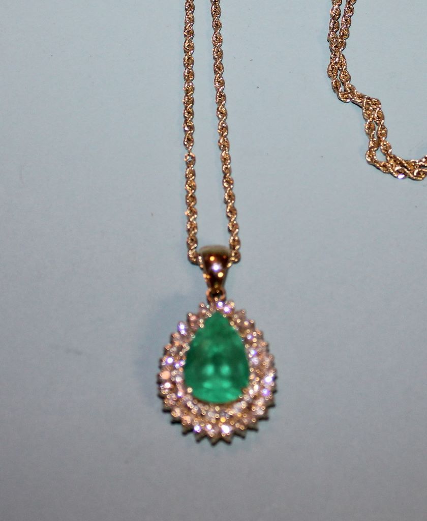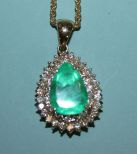 369 Ladies 14k Gold Emerald and Diamond Pendant and Chain