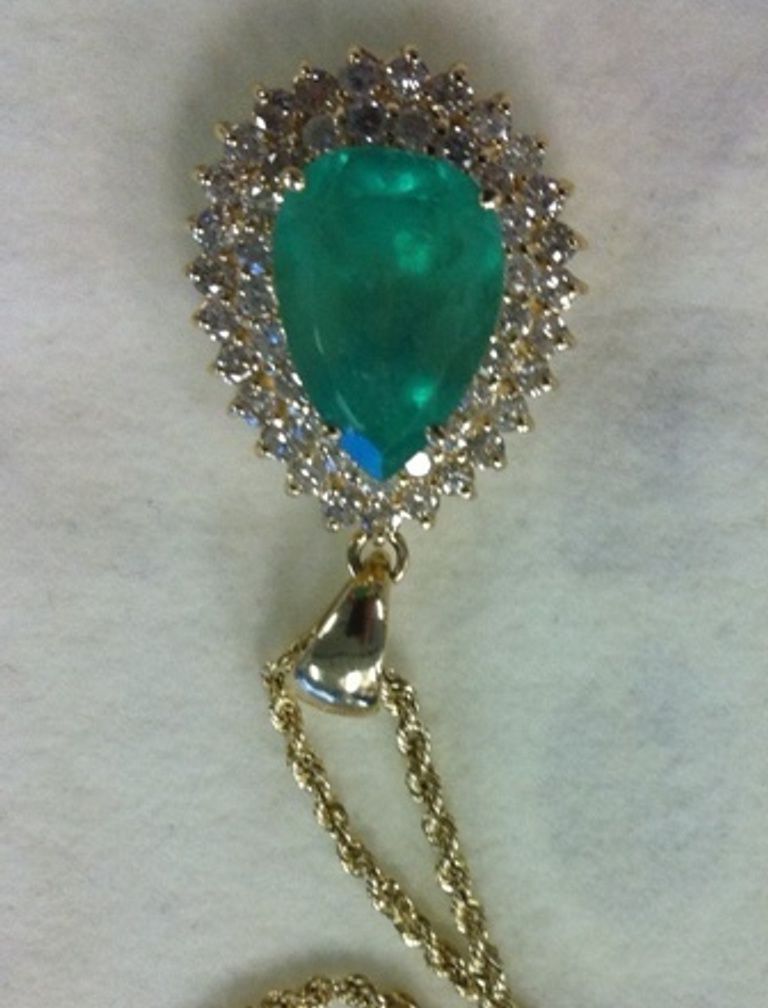 Ladies 14k Gold Emerald and Diamond Pendant and Chain Ladies 14k Gold Emerald and Diamond Pendant and Chain