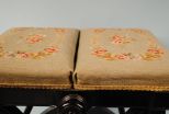 Late 19th Century Teacher's Piano Bench; black lacquer, needlepoint seat curule form teacher's piano bench. The seat goes up and down as well as extends out on each side. 20 1/2" w., 15" d., 20" H. Late 19th Century Teacher's Piano Bench; black lacquer, needlepoint seat curule form teacher's piano bench. The seat goes up and down as well as extends out on each side. 20 1/2" w., 15" d., 20" H.