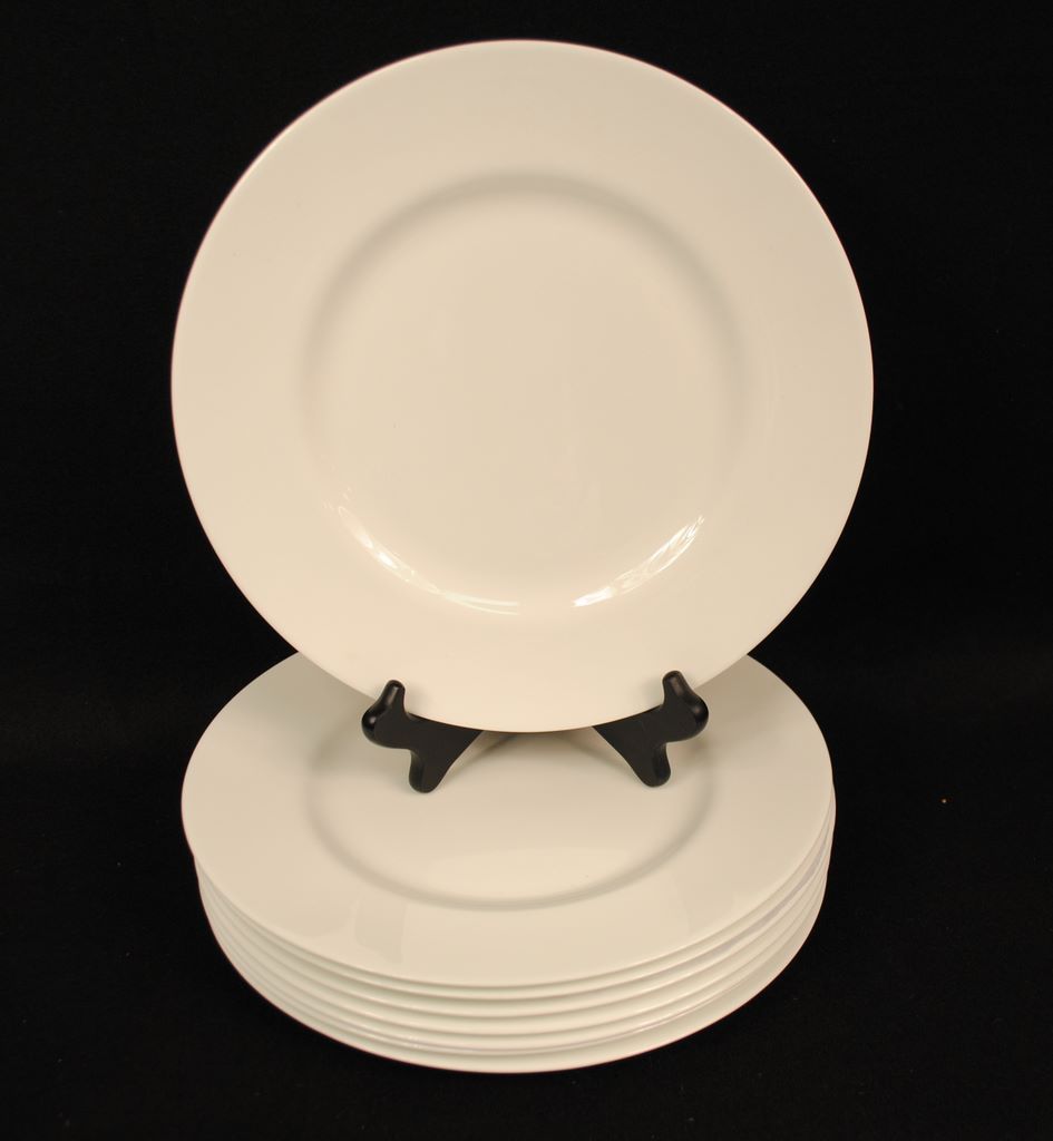 A simple and elegant set of eight Wedgwood China pure white 10 3/4" chargers. A simple and elegant set of eight Wedgwood China pure white 10 3/4" chargers.