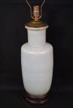 A 16 3/4"h celadon vase, finely incised with fronds and geometric designs, drilled and converted to a lamp, 28 1/2"h to top of harp, mounted on a carved teak base. "Great Ming" Dynasty marks to be, presumably not. A 16 3/4"h celadon vase, finely incised with fronds and geometric designs, drilled and converted to a lamp, 28 1/2"h to top of harp, mounted on a carved teak base. "Great Ming" Dynasty marks to be, presumably not.