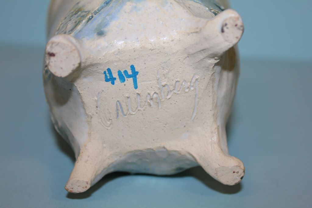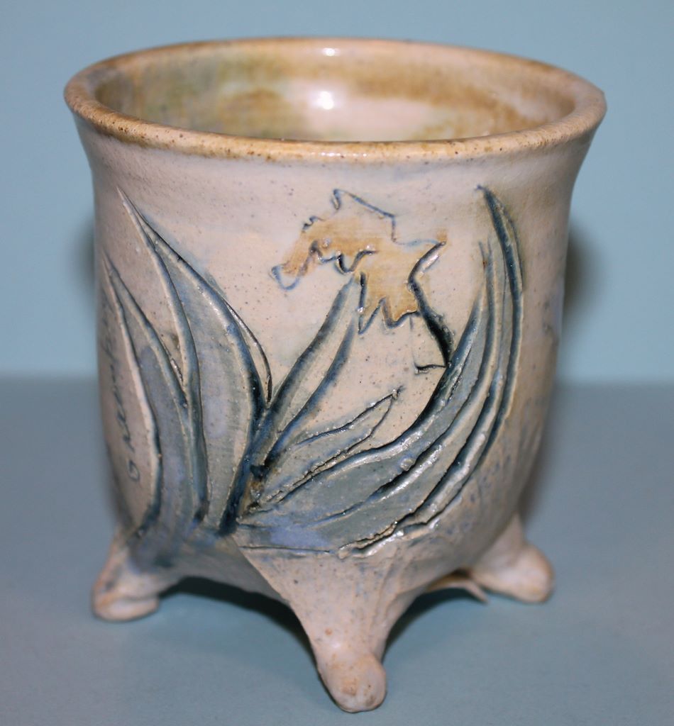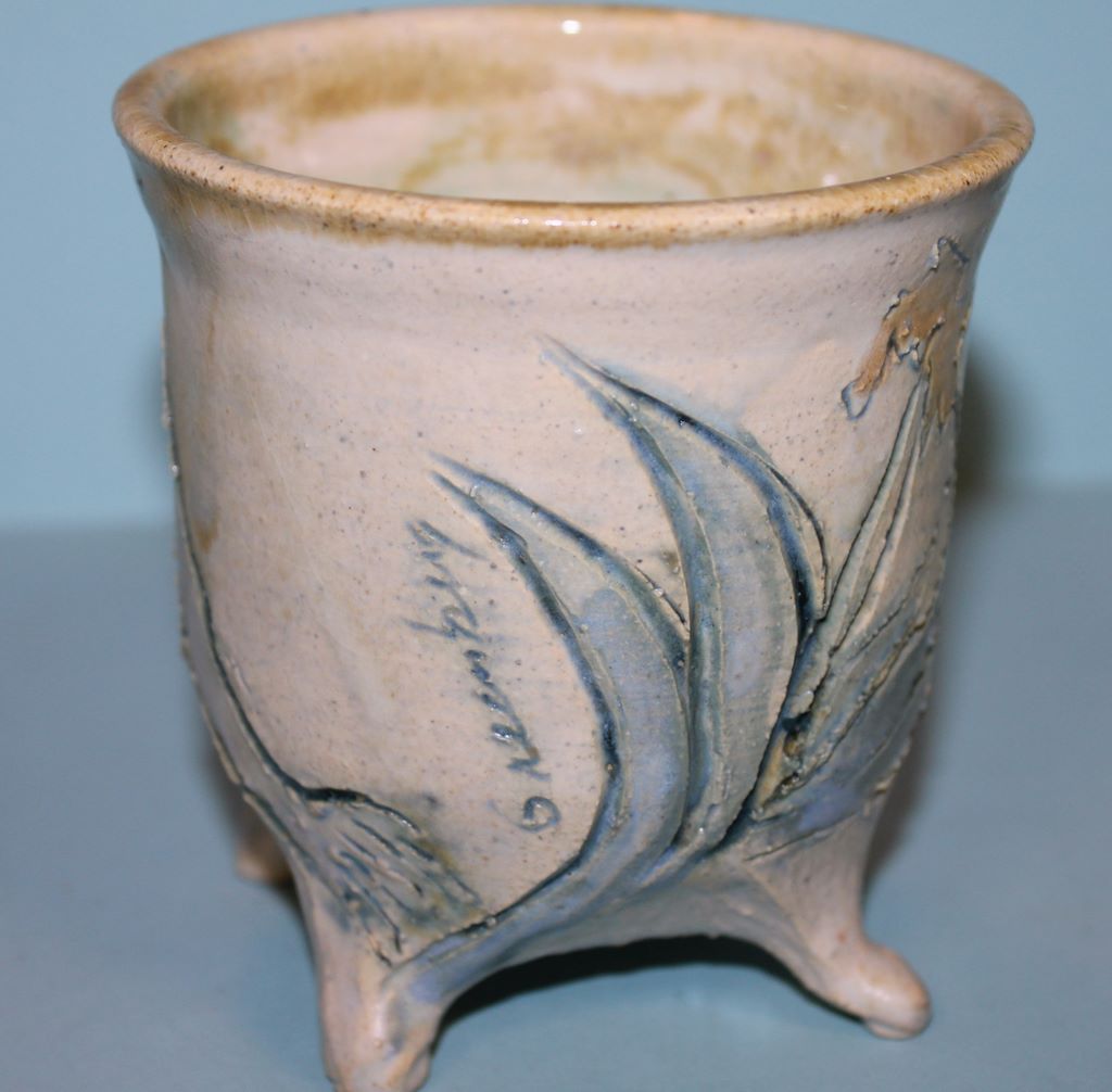 A JoAnn Greenberg (b.1928), New Orleans studio pottery 3 3/4"h footed vase, decorated with a female nude and Louisiana irises. Ms. Greenberg attended Newcomb College in 1940, and is the last of the College's pottery students currently working professionally. Examples of her work are included in the permanent collection of the New Orleans Museum of Art. A JoAnn Greenberg (b.1928), New Orleans studio pottery 3 3/4"h footed vase, decorated with a female nude and Louisiana irises. Ms. Greenberg attended Newcomb College in 1940, and is the last of the College's pottery students currently working professionally. Examples of her work are included in the permanent collection of the New Orleans Museum of Art.