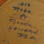 A large PZH Gouda Pottery hand painted Arts & Crafts "Roba" vase, artist signature and interwoven "BD", 12 1/4"h x 7 1/2"w at rim. A large PZH Gouda Pottery hand painted Arts & Crafts "Roba" vase, artist signature and interwoven "BD", 12 1/4"h x 7 1/2"w at rim.