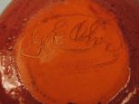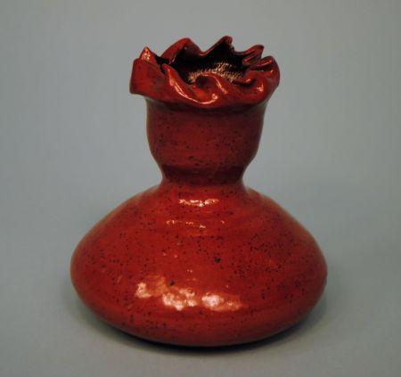 A fine George Edgar Ohr (1857-1918), Biloxi, Mississippi, 4 1/2"h vase with elaborately crimped rim, fully signed in cursive, 1898-1910, plum colored exterior glaze with dark brown interior. A fine George Edgar Ohr (1857-1918), Biloxi, Mississippi, 4 1/2"h vase with elaborately crimped rim, fully signed in cursive, 1898-1910, plum colored exterior glaze with dark brown interior.