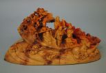 A large Chinese carved Shou Shan Mountain Stone boat filled with eight Immortals and one hanging on outside, 5 1/2"h x 12" w x 4 1/4"d. A large Chinese carved Shou Shan Mountain Stone boat filled with eight Immortals and one hanging on outside, 5 1/2"h x 12" w x 4 1/4"d.