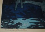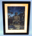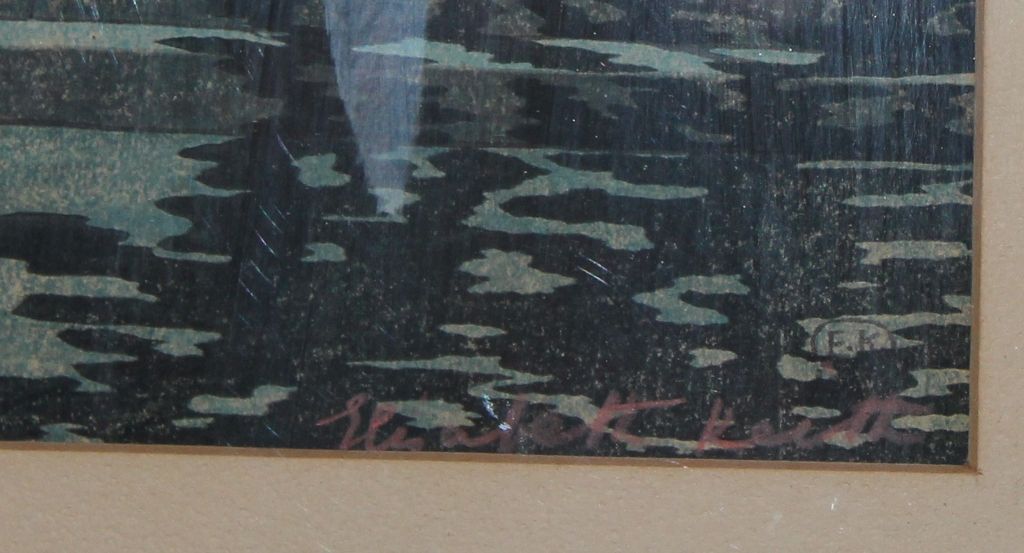 c1919 Elizabeth Keith (1889-1956), Great Britain, color woodblock print, "The Daibutsu, Kamakura," with signature seal and red signature in lower right image, 17 1/2" x 12 3/4" image size, full margins, 19" x 24 1/2" in old framing. Titled lower left margin, inscribed #31 of 100 limited edition. Intense color, no fading or staining, mounted to old matte with masking tape. The wood blocks for this print were destroyed in the 1923 earthquake. c1919 Elizabeth Keith (1889-1956), Great Britain, color woodblock print, "The Daibutsu, Kamakura," with signature seal and red signature in lower right image, 17 1/2" x 12 3/4" image size, full margins, 19" x 24 1/2" in old framing. Titled lower left margin, inscribed #31 of 100 limited edition. Intense color, no fading or staining, mounted to old matte with masking tape. The wood blocks for this print were destroyed in the 1923 earthquake.