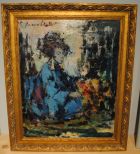 James Lee Clutter/Colt (1922-2005) semi-abstract impressionist painting of a seated Geisha in profile. A student of Sergei Bongart and influenced by Velasquez and Goya, Cullen worked primarily in California and Arizona. Clutter changed his name to Colt in 1977. Oil on canvas, signed top left, framed 36 1/4" x 30 1/2". Note: The artist is primarily known for scenes of the American West and Native Americans. James Lee Clutter/Colt (1922-2005) semi-abstract impressionist painting of a seated Geisha in profile. A student of Sergei Bongart and influenced by Velasquez and Goya, Cullen worked primarily in California and Arizona. Clutter changed his name to Colt in 1977. Oil on canvas, signed top left, framed 36 1/4" x 30 1/2". Note: The artist is primarily known for scenes of the American West and Native Americans.