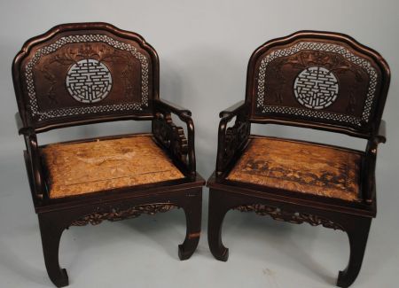 480 Pair Chinese Mandarin Teak Chairs with Pierced Backs