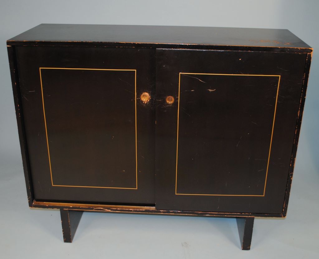 Mid Century Modern Black Lacquered Two Door Gentleman's Chest; interior fitted with slide out drawers, 51 1/2" w., 43" H., 18 1/2" d. Mid Century Modern Black Lacquered Two Door Gentleman's Chest; interior fitted with slide out drawers, 51 1/2" w., 43" H., 18 1/2" d.