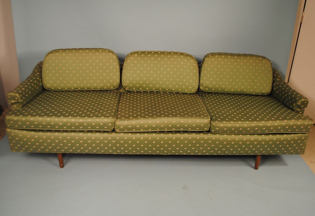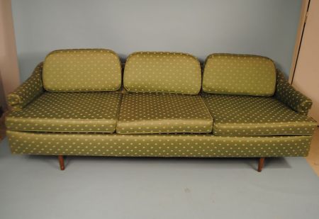 Three Section 1960's Sofa with mahogany legs, recently upholstered, fine condition, 7 1/2', 31 1/2" d., 26" H. Three Section 1960's Sofa with mahogany legs, recently upholstered, fine condition, 7 1/2', 31 1/2" d., 26" H.