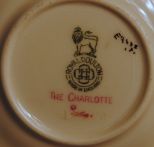 Royal Doulton "The Charlotte" China Set, set includes 86 pcs; 12 Dinner Plates, 10 1/4" dia., 12 Salad Plates, 8" square, 3 Bread and Butter Dishes, 7" dia., 4 Small Plates, 6 1/4" dia., 4 Saucers, 6 1/4", dia. (flat), 6 Saucers 6" dia. (rounded), 11 Small Saucers, 4 1/2" dia., 7 Saucers, 5 1/2" dia., 2 2-handled cups, 4 3/4" dia., 6 2-handled cups, 4" dia., 8 Cups, 3 1/2" dia., 11 Small Cups Royal Doulton "The Charlotte" China Set, set includes 86 pcs; 12 Dinner Plates, 10 1/4" dia., 12 Salad Plates, 8" square, 3 Bread and Butter Dishes, 7" dia., 4 Small Plates, 6 1/4" dia., 4 Saucers, 6 1/4", dia. (flat), 6 Saucers 6" dia. (rounded), 11 Small Saucers, 4 1/2" dia., 7 Saucers, 5 1/2" dia., 2 2-handled cups, 4 3/4" dia., 6 2-handled cups, 4" dia., 8 Cups, 3 1/2" dia., 11 Small Cups